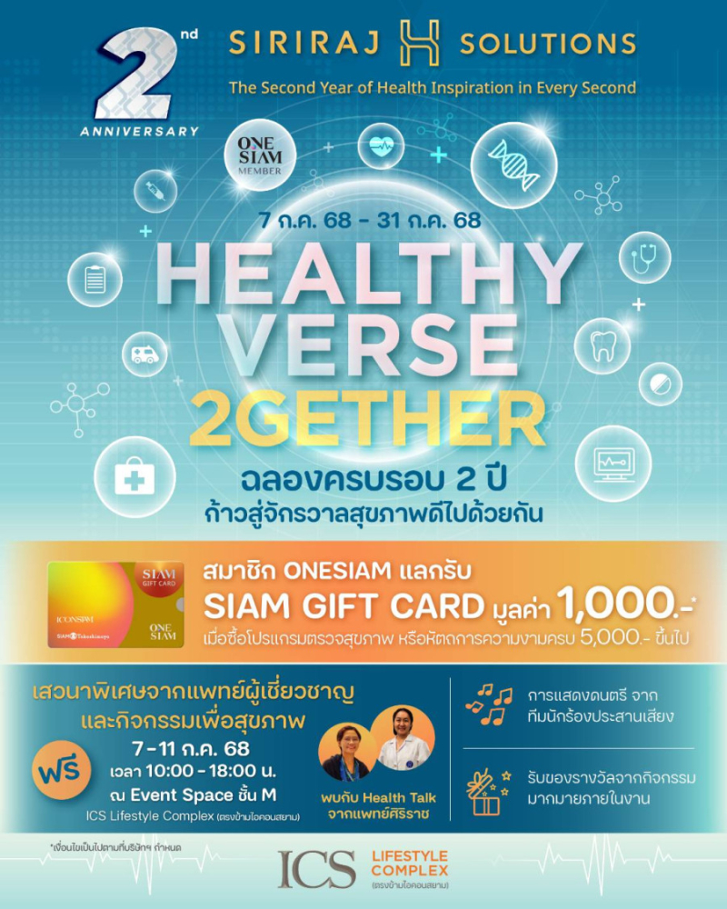 Health+ ICS Lifestyle Complex ร่วมฉลอง 2 ปี SIRIRAJ H SOLUTIONS จัดโปรโมชั่นพิเศษ admin ก.ค. 11, 2025 0 จัดโปรโมชั่นพิเศษ Th… Read More