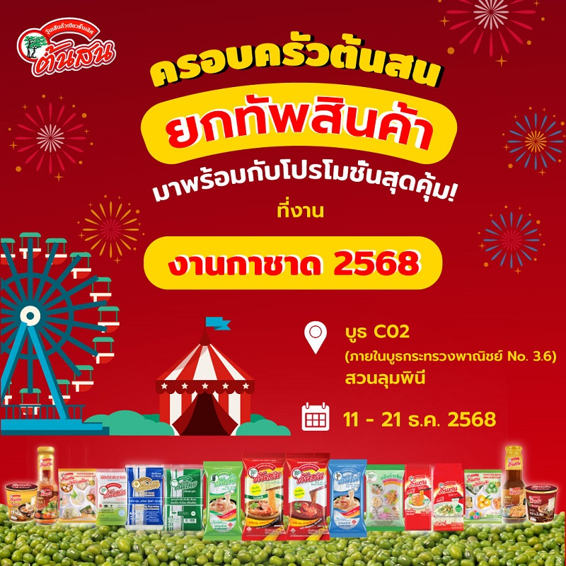 Lifestyle วุ้นเส้นต้นสน ร่วมออกบูธ “งานกาชาด 2568“ ยกทัพสินค้า พร้อมโปรโมชั่นสุดคุ้ม แนะนำสินค้าใหม่ “ต้นสน อีทซี่” อร่อยง่ายตอบโจทย์ GEN ใหม่ Admin2 ธ.ค. 19, 2025 0 บริษัท สิทธินันท์ จำ… Read More